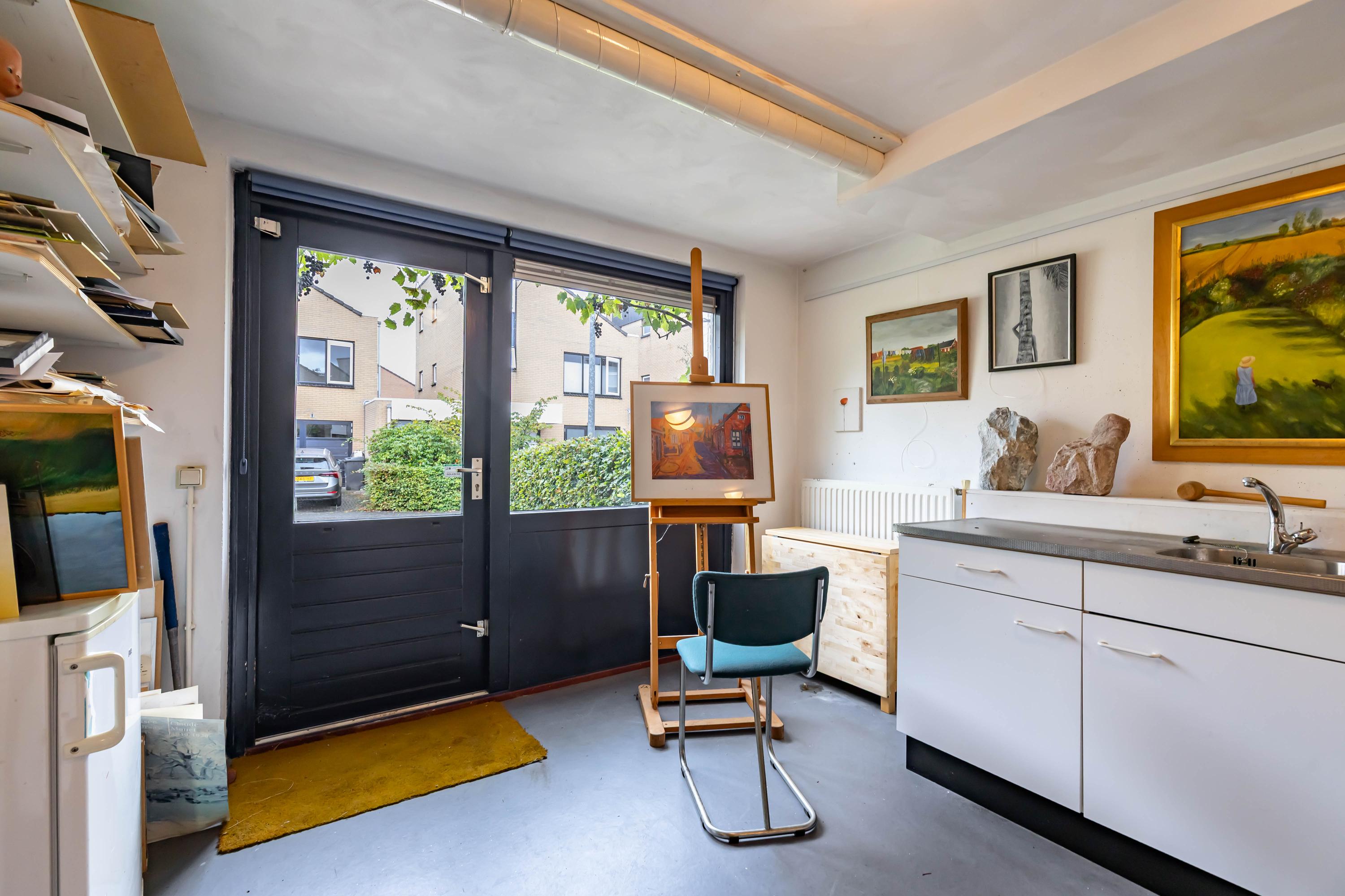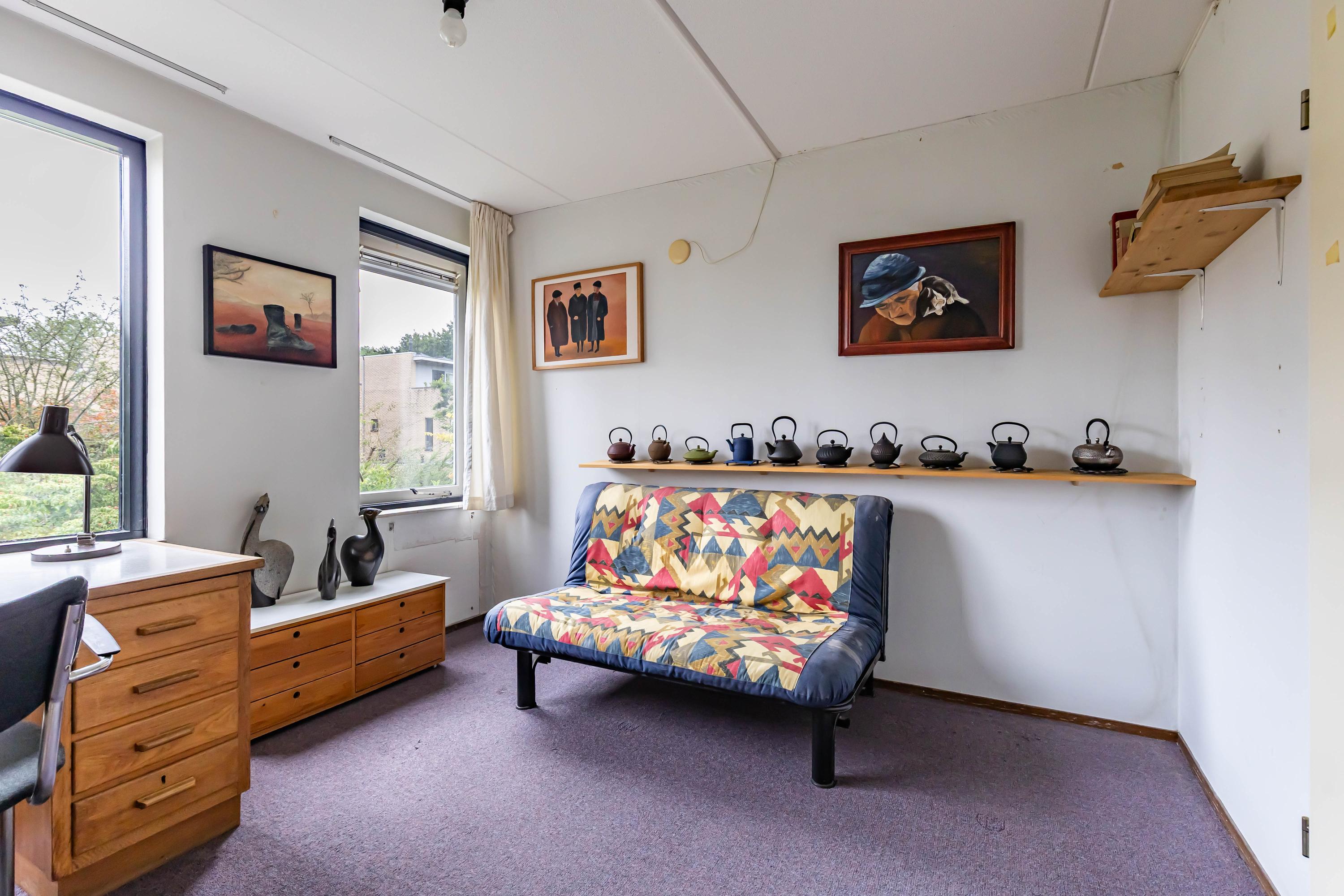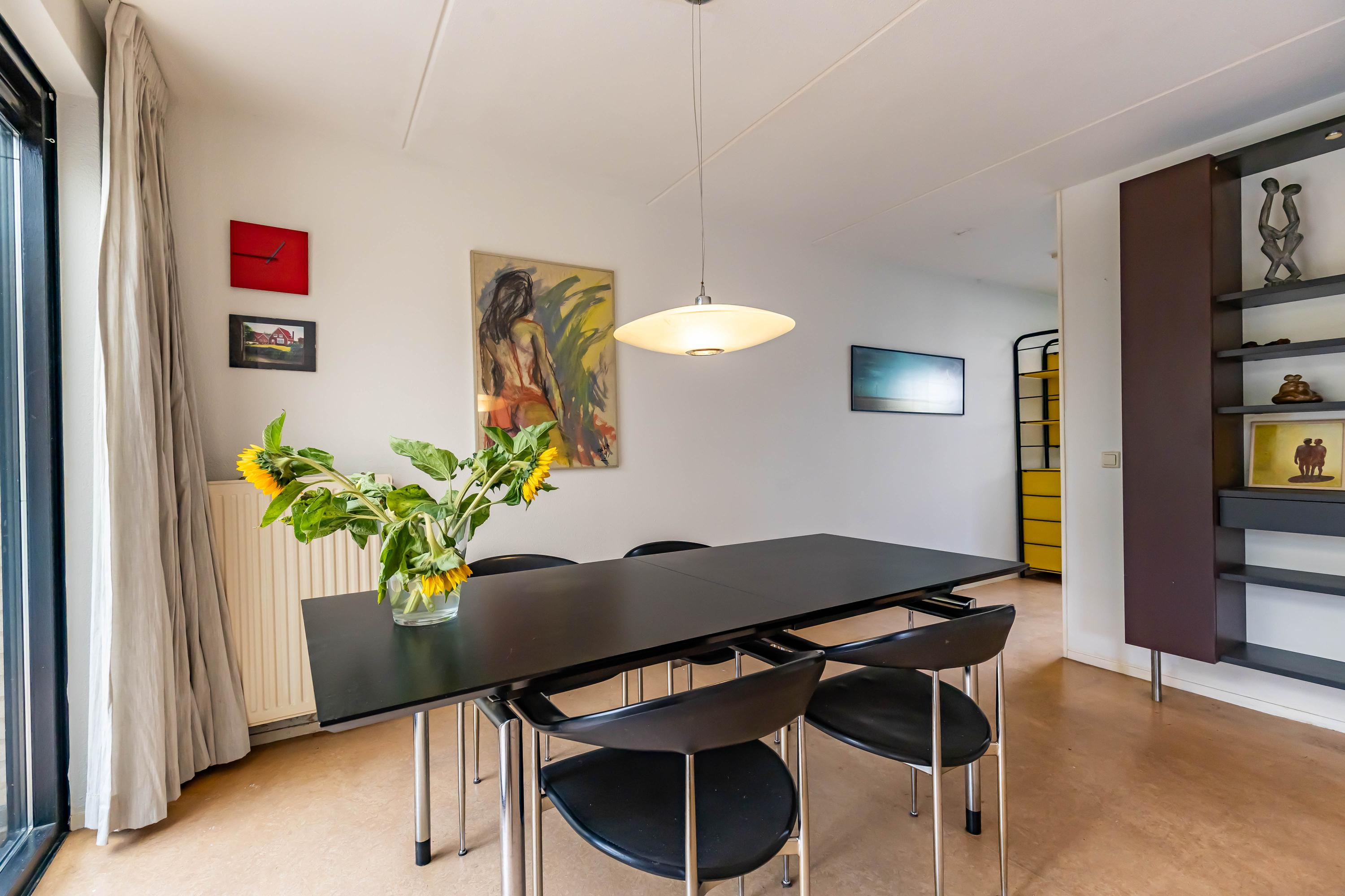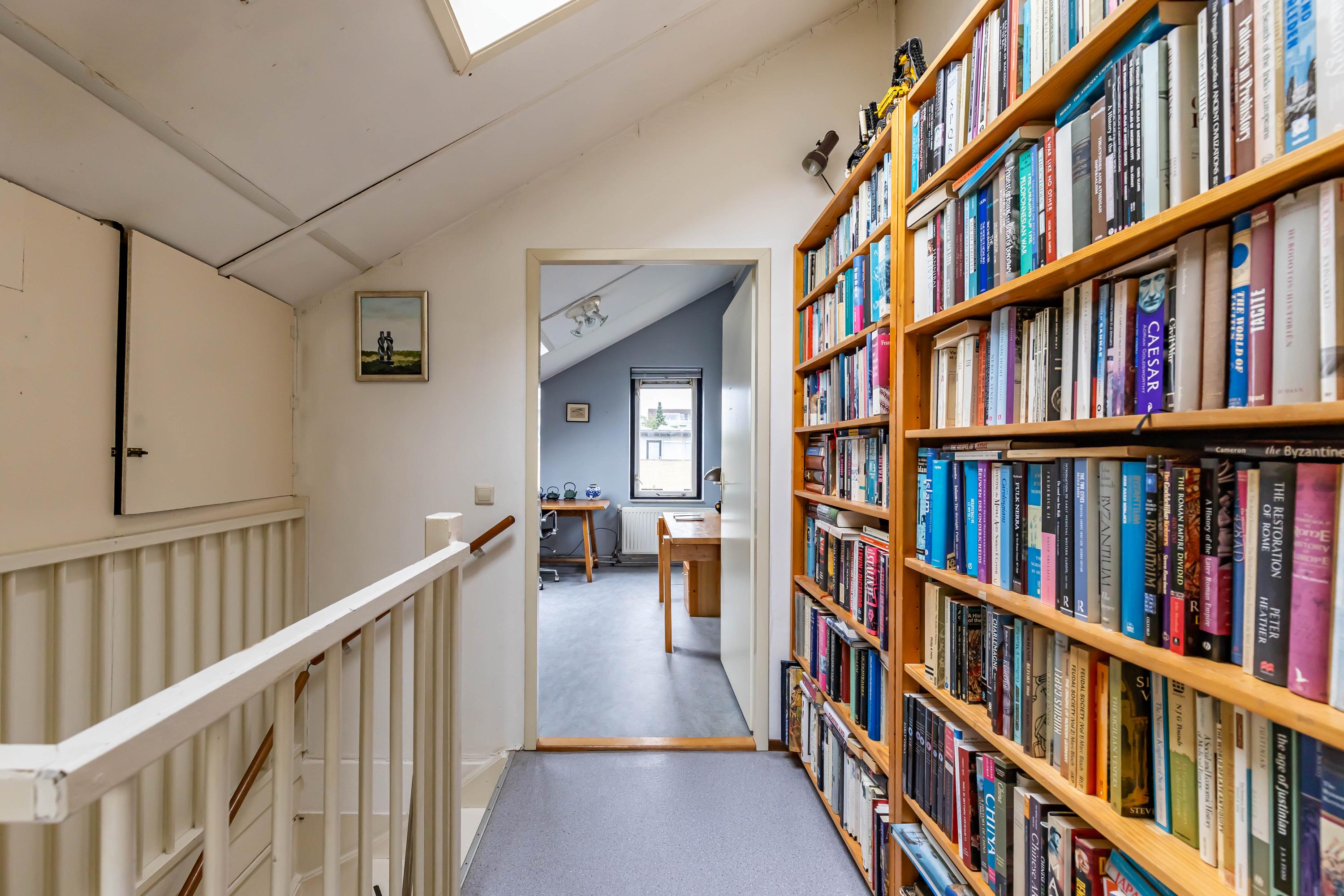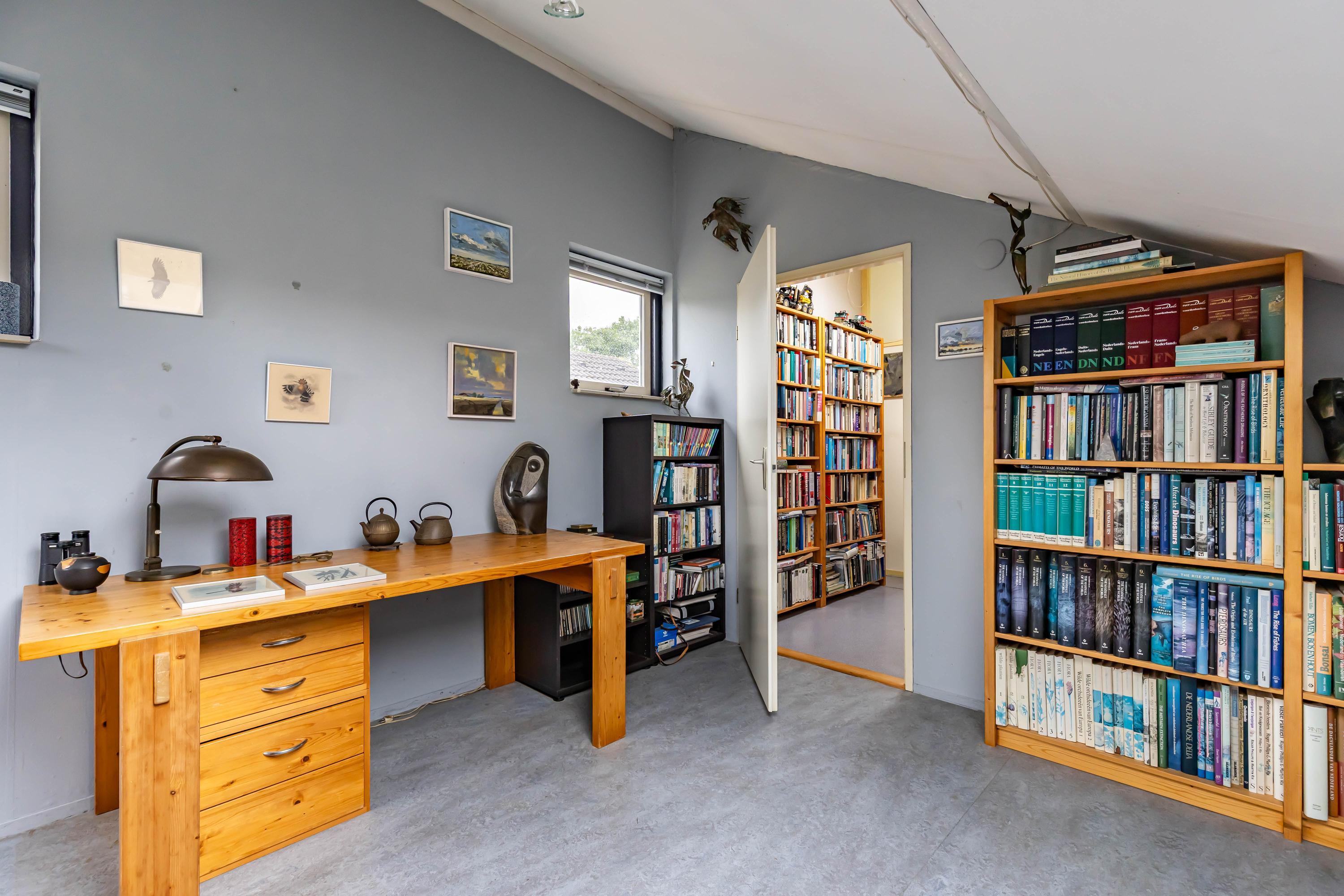De woning is mooi, maar ook functioneel en geschikt voor grote gezinnen dankzij vijf slaapkamers. De garage werd omgebouwd tot atelier, maar kan ook uitstekend dienst doen als bijkeuken of werkkamer. De woonkamer en semi-open keuken zijn met elkaar verbonden in een Z-vorm. Via de woonkamer loop je door naar de lichte serre met schuifpui naar de achtertuin. Ook de zithoek heeft een schuifpui naar de zonnige tuin. De slaapkamers liggen verdeeld over twee verdiepingen. De master-bedroom heeft een eigen toegang naar de ruime badkamer met douche, tweede toilet en tweepersoons wastafelmeubel. Kortom: alles bij de hand – zowel binnen als buiten – in deze ruime gezinswoning in Groningen zuid!